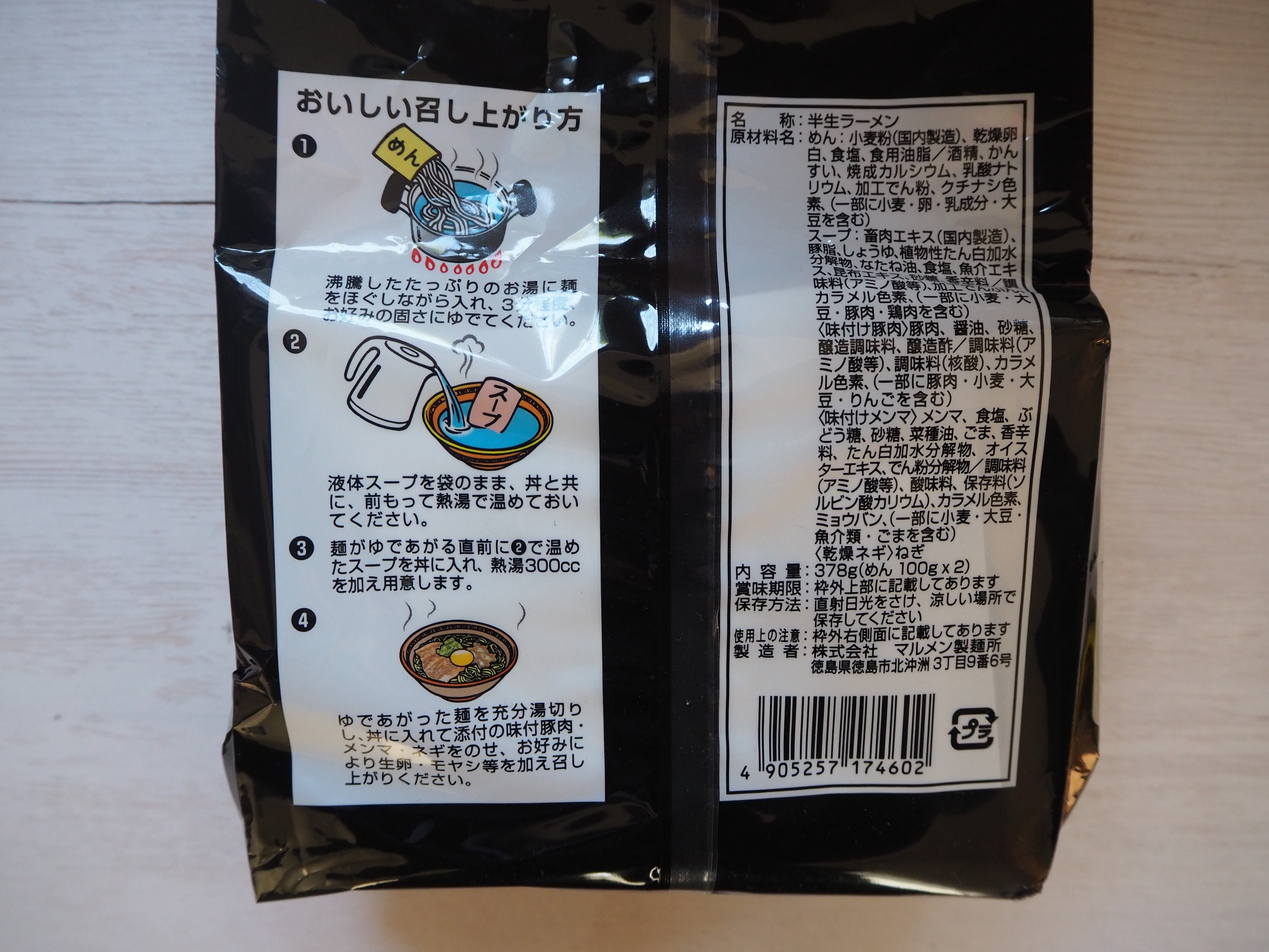 徳島ラーメン2食袋(麺×2、スープ×2、味付豚肉×2、メンマ×2、ネギ×2)×2