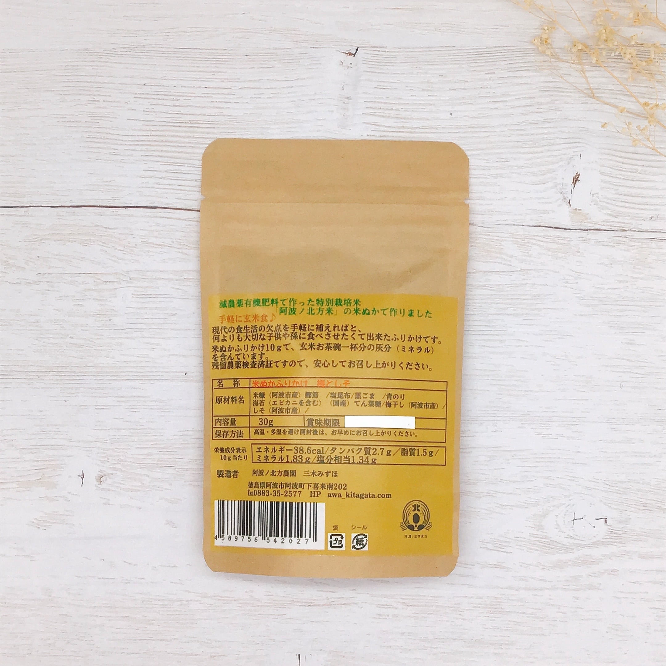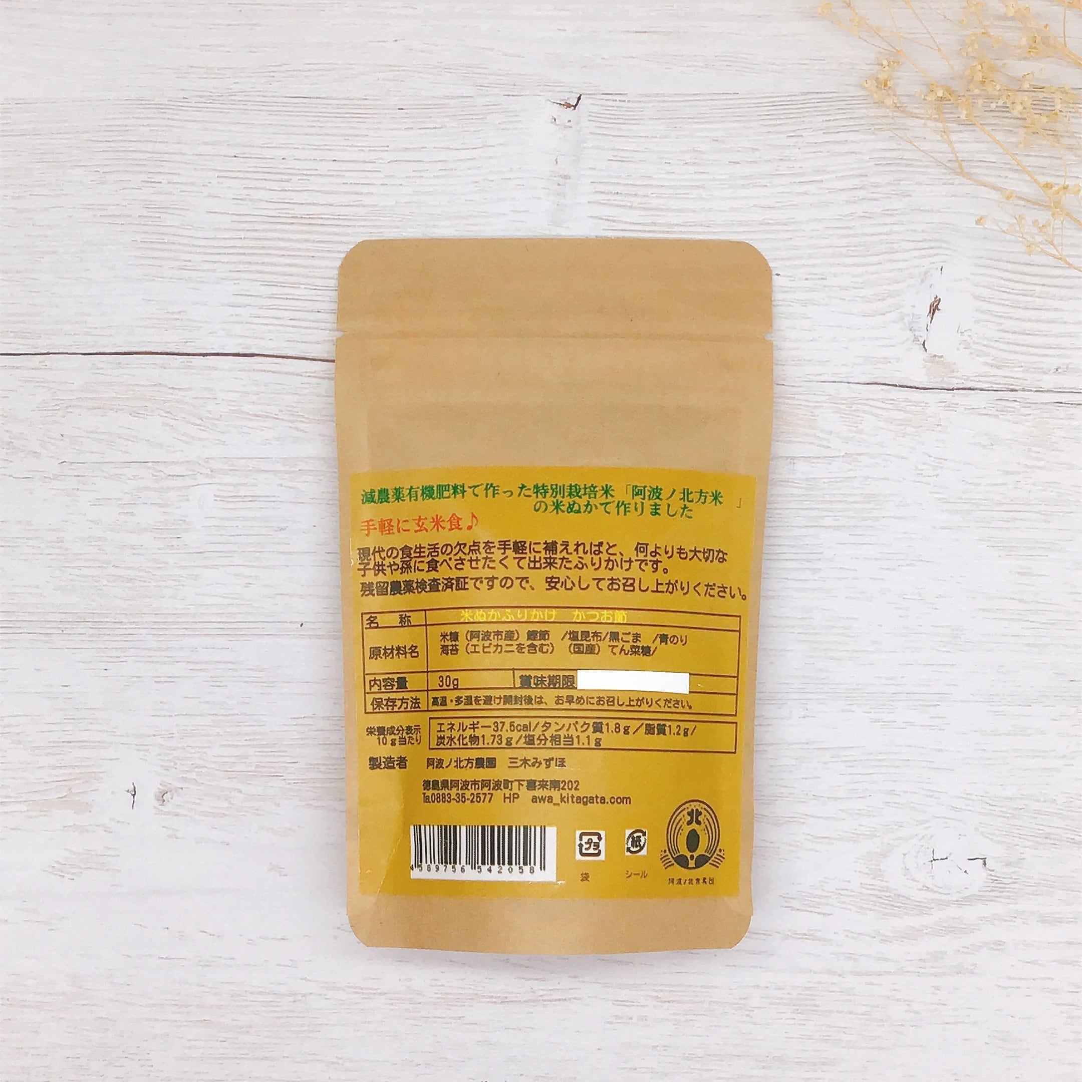 米ぬかふりかけ《阿波ノ北方農園》は、安心安全なものをお客様に届けたいという思いから作られた、減農薬、有機肥料の阿波ノ北方米の米ぬかを、手作業でじっくり焙煎したふりかけです。